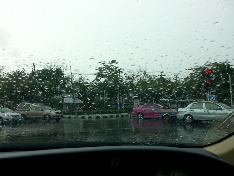 ระหว่างทาง  เจอฝนตกหนักตั้งแต่ยังถึงไม่แยกเกษตร