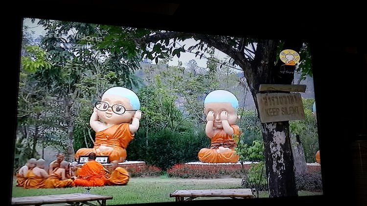 รูปปั้นสามเณรน้อย ปิดตา  ปิดหู  ปิดจมูก ปิดปาก เป็นรูปปั้นสอนธรรม ให้เราสำรวมกาย วาจา ใจ ให้เป็นปกติ ไม่ยินดี ไม่เพลิดเพลิน ไม่รัก ไม่ชอบ ชอบก็สำรวม ไม่ชอบก็สำรวม ด้วยการเห็นสักแต่ว่าเห็น  ได้ยินสักแต่ว่าได้ยิน ได้ดมกลอ่มก็สักแต่ว่าได้ดมกลิ่น ได้ลิ้มรสสักแต่ว่าได้ลิ้มรส รวมถึงอีกสอลอย่างคือ ได้สัมผัสทางกายก็เฉย ๆ ไม่ปล่อยใจให้นึกคิดปรุงแต่ง ไปตามอารมณ์