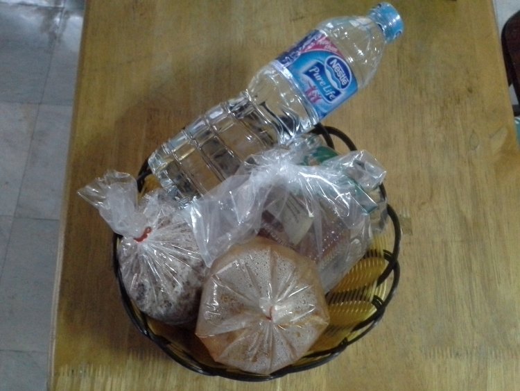 ใส่บาตรพระเสร็จก็รับประทานอาหารเช้า เป็นแกงส้มดอกแค กับหัวฉ่ายโ้ผัดไข่  สัปปะรด(พี่ตู๊ นำมาให้) และถั่วและ