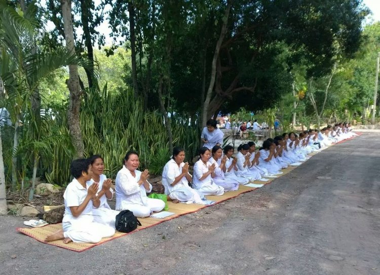 กิจกรรมยามค่ำ คือ สวดมนต์ทำวัตรเย็น ฟังธรรม และนั่งเจริญสติ