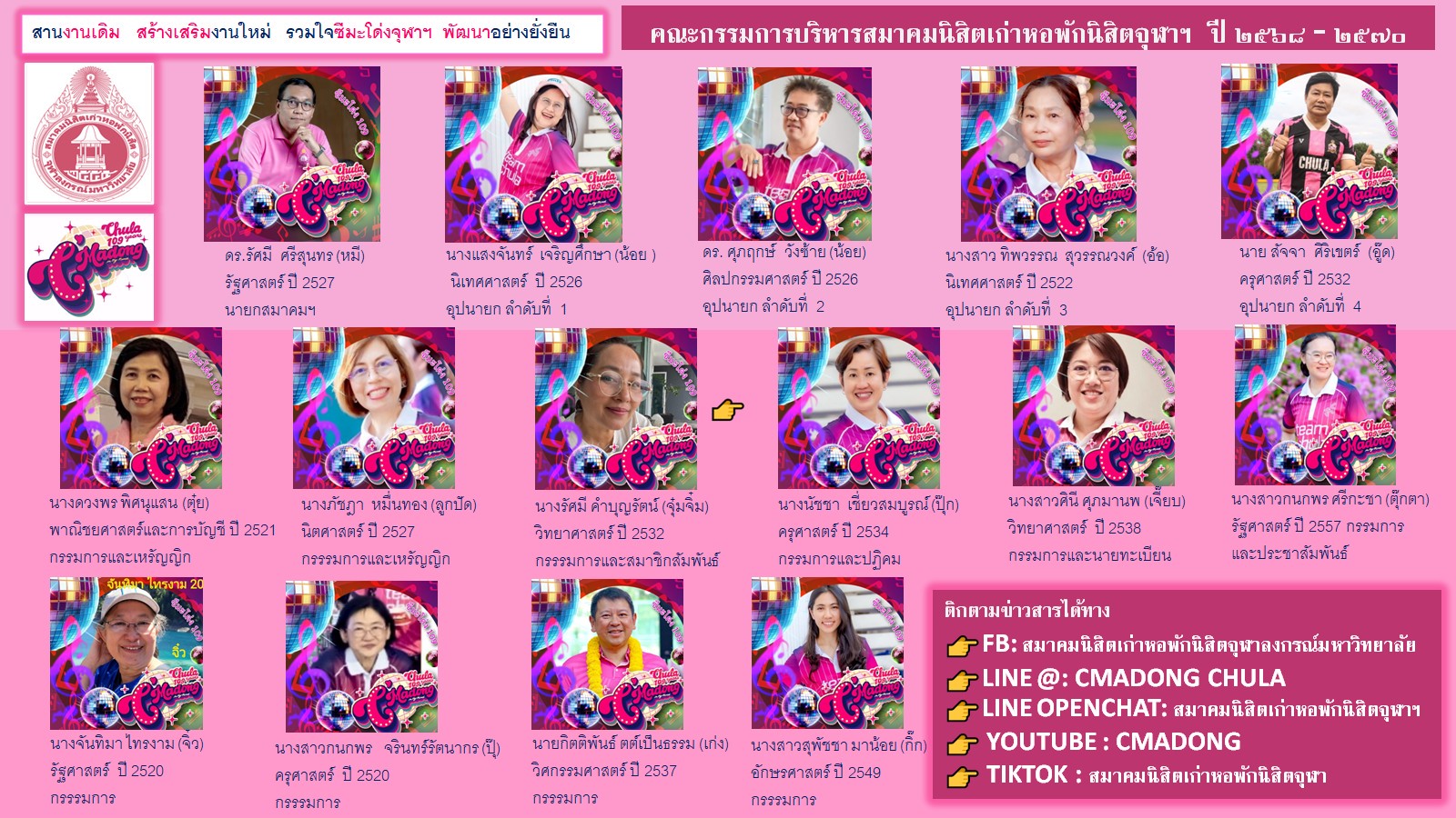 คณะกรรมการสมาคมนิสิตเก่าหอพักนิสิตจุฬาฯ ปี 2568-2570