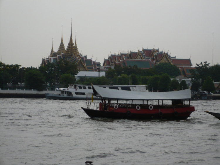จาก กรมอยู่ทหารเรือ หันหน้าไปทางแม่นํ้าเจ้าพระยา (ทิศตะวันออก) จะเป็นวัดพระแก้วมรกต (แสงไม่ค่อยดี ครึ้มฝน) พอดี