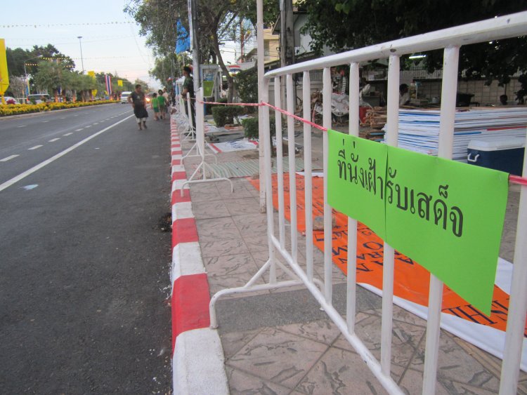 ส่วนงานพระราชพิธีวันฉัตรมงคล 5 พฤษภาคม 2557 นี้ พระบาทสมเด็จพระเจ้าอยู่หัว จะเสด็จฯ ออกมหาสมาคม ณ ท้องพระโรง ศาลาราชประชาสมาคม โดยประทับรถยนต์พระที่นั่งจากพระตำหนักเปี่ยมสุข ทางประตูเสด็จฯ วังไกลกังวล เข้าสู่ถนนเพชรเกษม เลี้ยวขวาเข้าซอยหัวหิน 35 ด้านข้างสำนักงานวังไกลกังวล ไปยังท้องพระโรงศาลาราชประชาสมาคม วังไกลกังวล เพื่อให้พสกนิกรชาวไทย และชาวประจวบคีรีขันธ์ ได้เฝ้ารับเสด็จฯ และชื่นชมพระบารมีตามเส้นทางเสด็จดังกล่าว เหมือนเช่นที่ทรงเสด็จออกมหาสมาคม 5 ธันวาคม 2556 ที่ผ่านมา