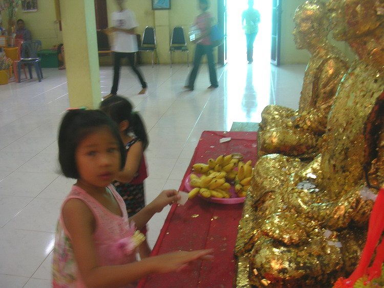แม้แต่เด็กๆ ก็ไปทำบุญไหว้พระกัน