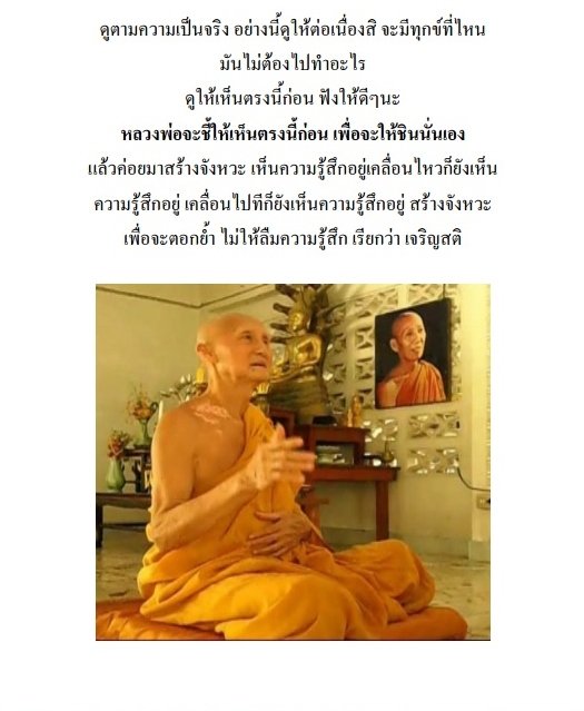 ดังนั้น นักปฏิบัติธรรม  อย่าปล่อยให้ฝัน  เมื่อฝันต้องมีสติรู้ตัว  ความฝันจะหยุดทันที และเราก็ยังหลับอยู่ เช่นเดียวกับ เมื่อเราลืมกาย  ลืมใจ  คือปล่อยให้คิด เราต้องรู้สึกตัว หรือมีสติ เมื่อรู้สึกตัว ความคิดปรุงแต่งก็หยุดทันที มันเป็นเช่นนั้น