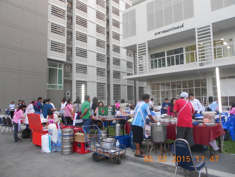 ณ บริเวณสนามหญ้า หน้าอาคารหอพัก 17 ชั้นหลังใหม่ (หอชวนชม)