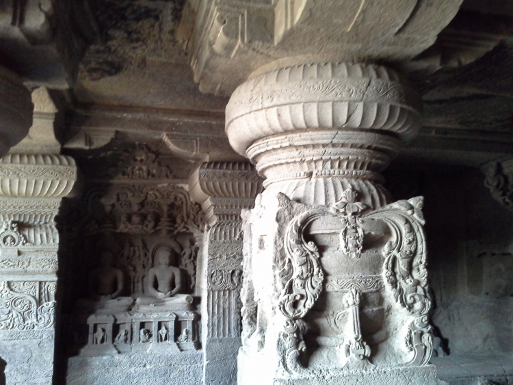 พุทธศาสนาถ้ำที่ ๑ - ๑๒ มีทั้งหินยาน และมหายาน โดยเอาแนวการแกะสลักหิน วางแปลนเหมือนถ้ำ AJANTA สร้างในยุคคุปตะ
